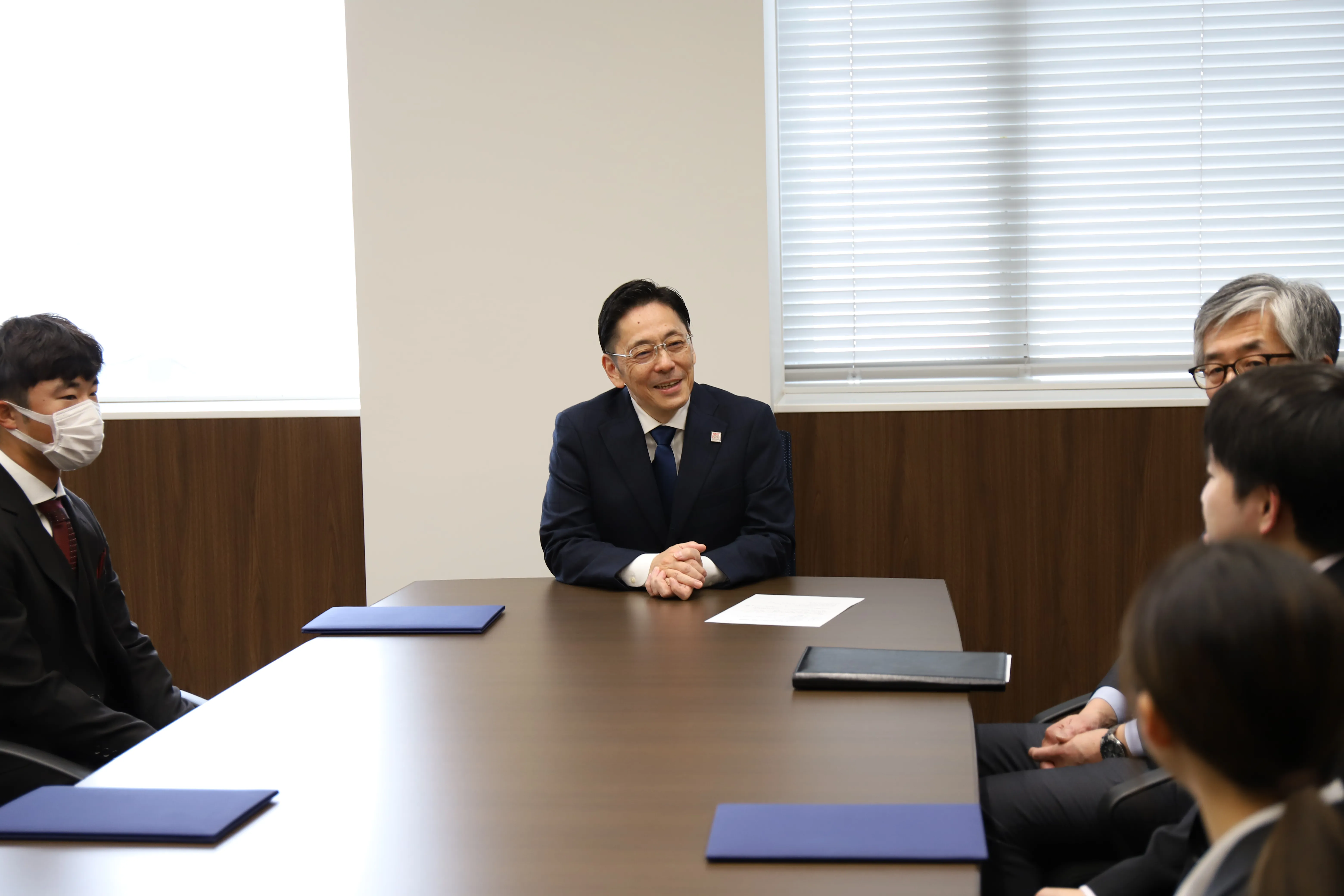 川上 敬学長から受賞した学生に表彰状が授与された後、学長を交えた懇談会を実施しました。