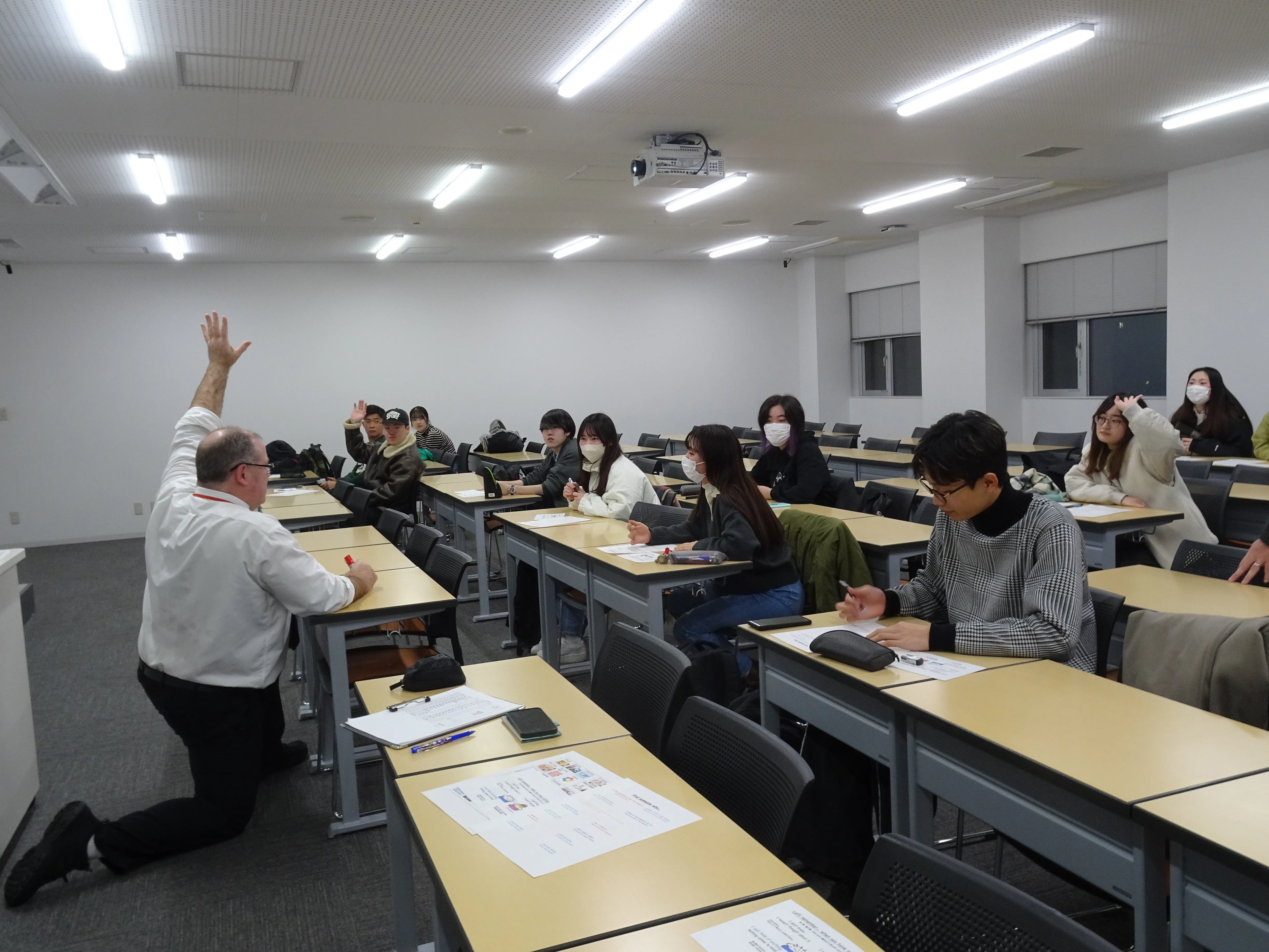 2月23日(金)に出発するオーストラリア研修の事前準備として、全学共通教育部のオルソン先生を講師に英会話レッスンをおこないました。