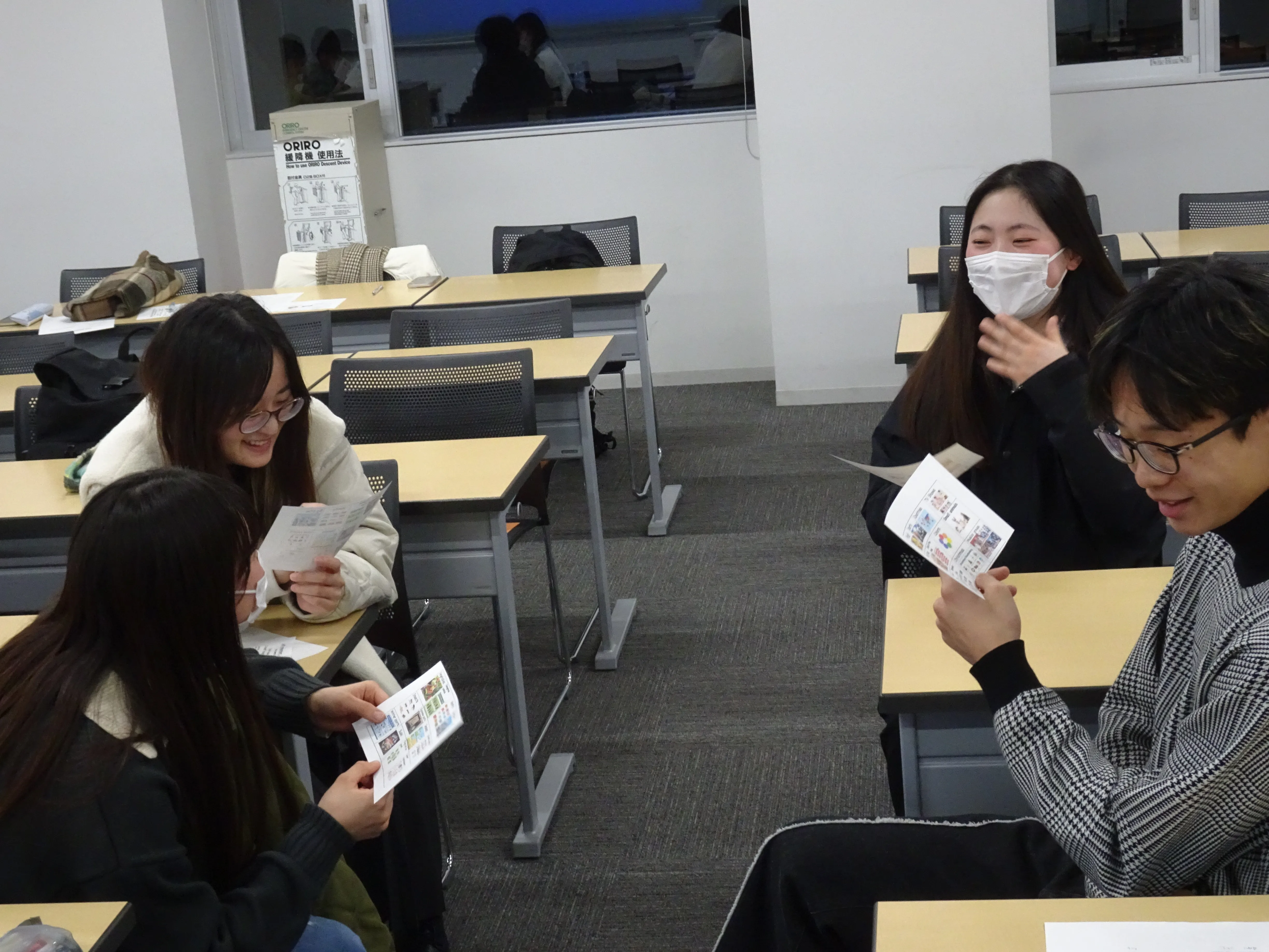 ワークシートに書かれた条件に当てはまる人を見つけるゲームや、ヒントを出して他のグループメンバーに答えを推測してもらうゲームを実施し、参加者は英語でのやりとりに苦戦しているようでしたが、互いを知る良い機会になったようです。