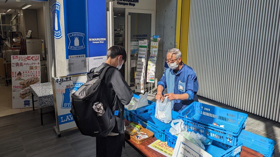 今回は北海道科学大学親交会の支援によりLAWSONの朝食セットを100円で販売しました。
