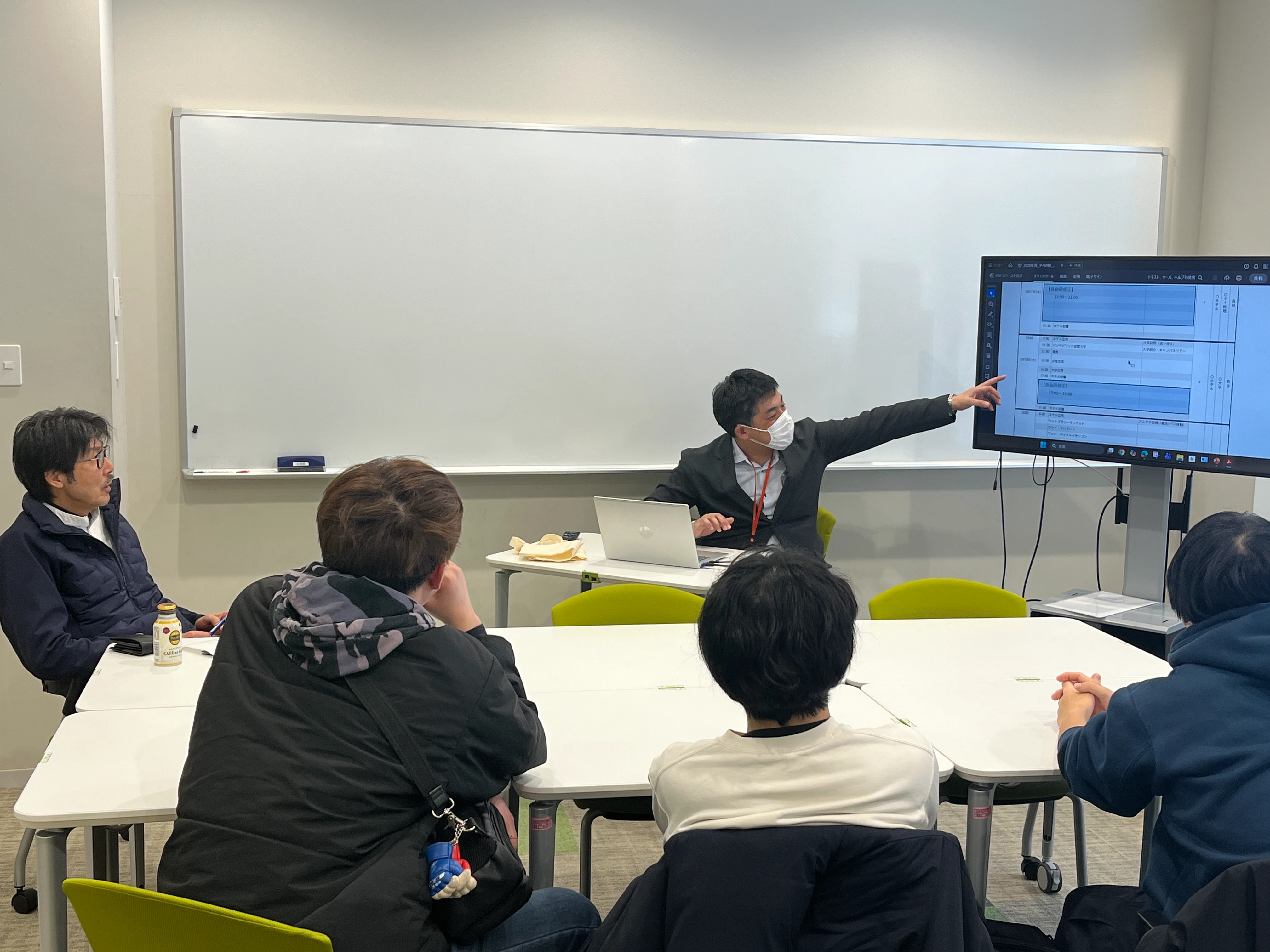 事前ワークでは引率職員から全体スケジュール説明の後、参加者が主体となって自由研修訪問先や学生交流でのアクティビティについて話し合いました。
