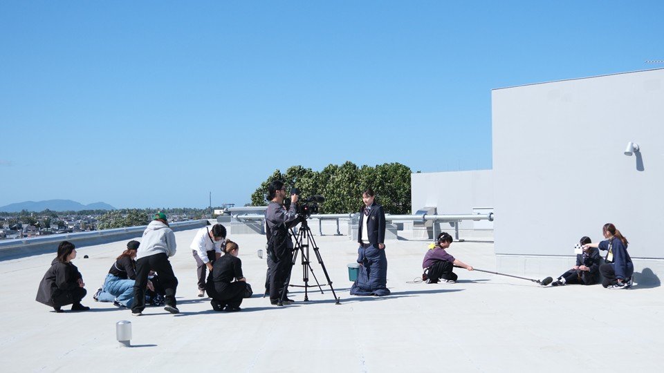 さらに、メディアデザイン学科の田中藍海さん、飯田早葵子さんが制作として、小山ひかるさんが出演者として撮影に参加し、実際の映像制作のプロセスを体感する貴重な機会となりました。