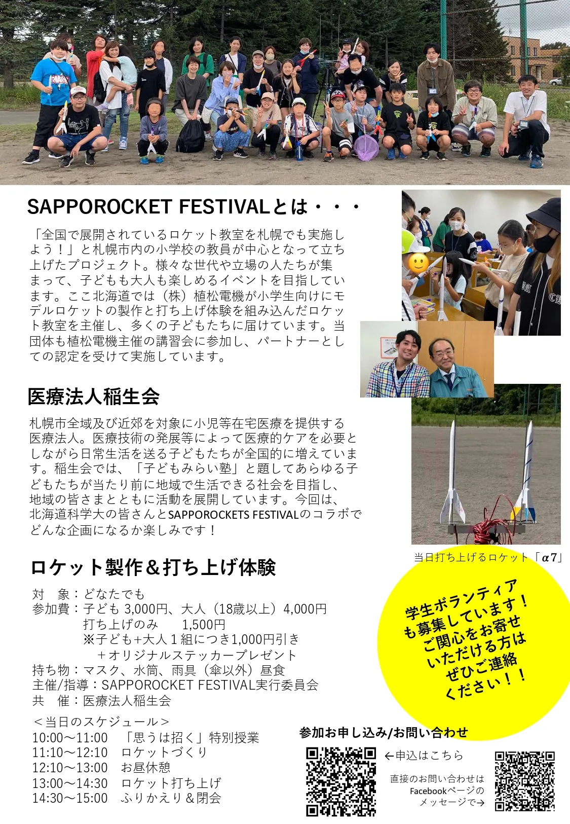 SAPPOROCKET FESTIVAL×医療法人稲生会「ロケット教室」を開催します