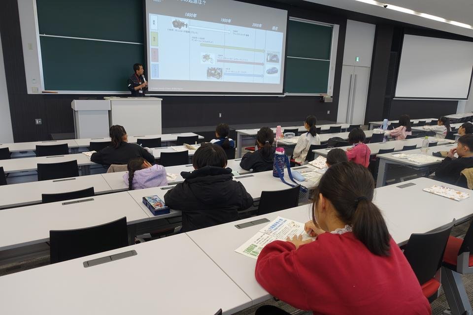 機械工学科の北川浩史准教授による特別講義として、自動車の歴史をテーマにした学びのプログラムを実施。