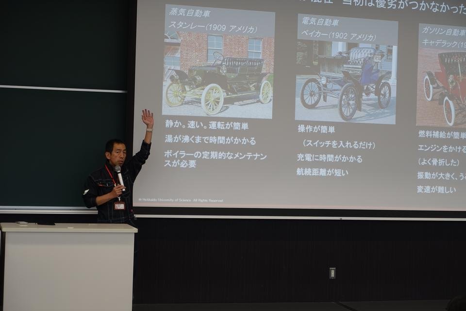 講義中では、「なぜT型フォードが北海道科学大学にあるのか?」という疑問への答えも明かされました。