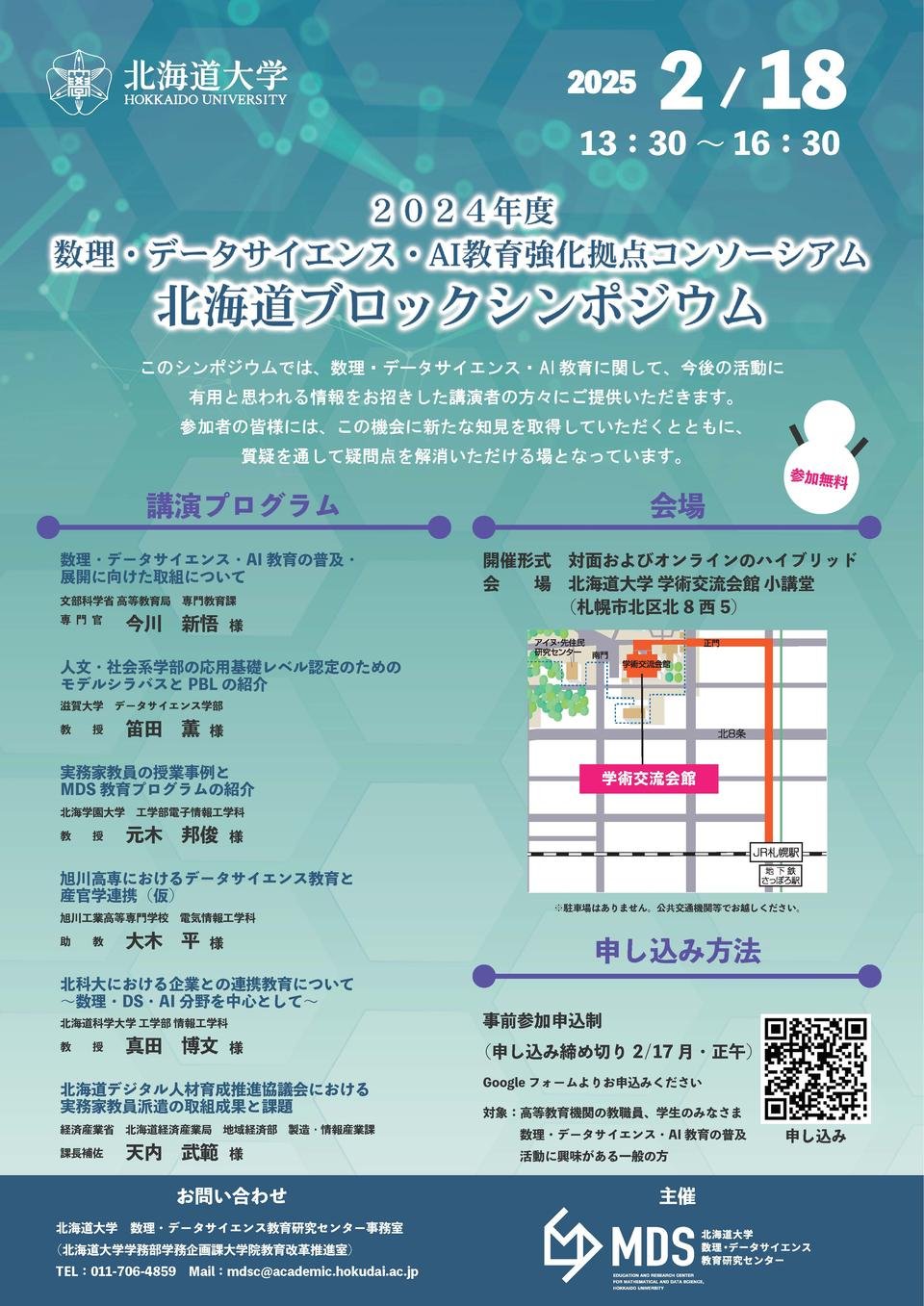 2025年2月18日(火)、「2024年度 数理・データサイエンス・AI教育強化拠点コンソーシアム 北海道ブロックシンポジウム」において、教育イノベーション推進機構長 真田 博文教授が講演を行いました。