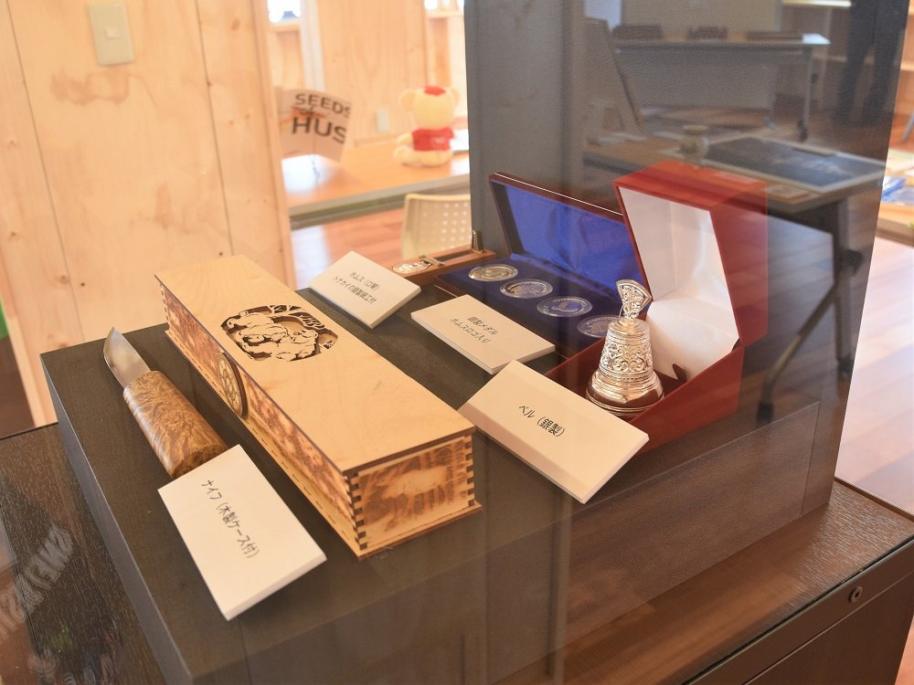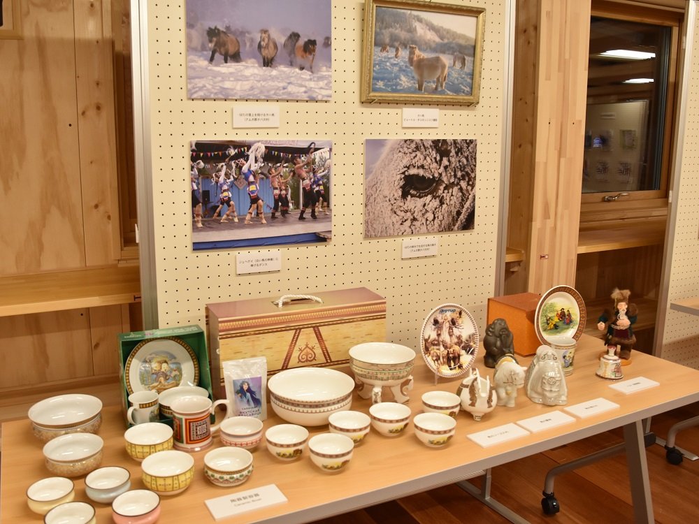 別会場では、馬入酒杯やトナカイの毛皮でできた子供用の靴など、サハ共和国の民具を多数展示するコーナーが設けられ、講演の前後には荏原准教授自ら来場者に解説を行いました。