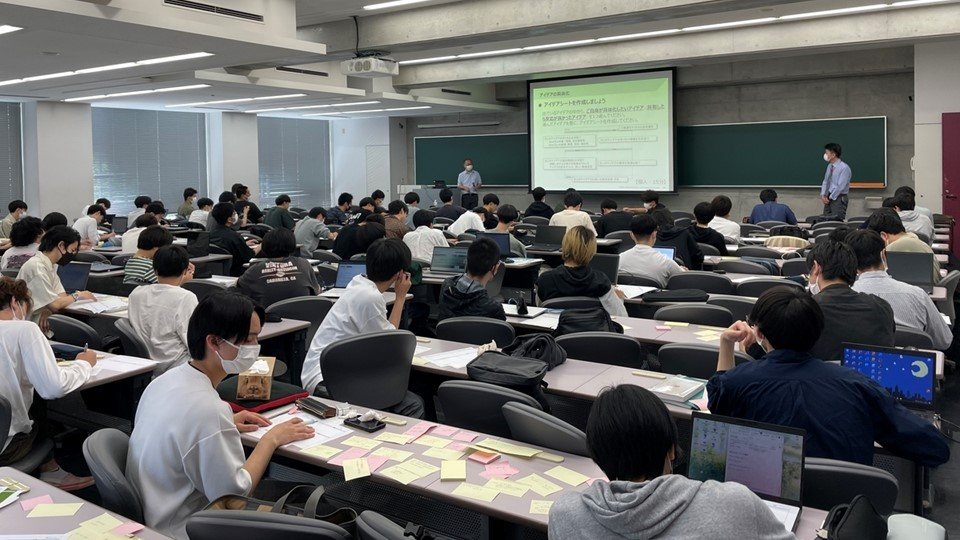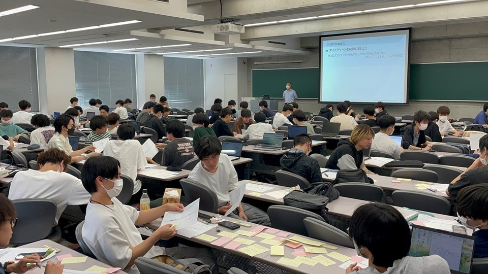 今回は、先週聴講したIoT機器開発の講演をベースに学生たちがグループワークで取り組みました。