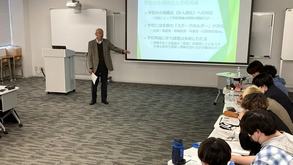 2024年5月29日(水)、教職課程科目「教育制度と学校経営」の授業において、宮田日出夫氏(元・北海道有朋高等学校長、元・北海道教育庁職員)をお招きし、特別授業を実施しました。