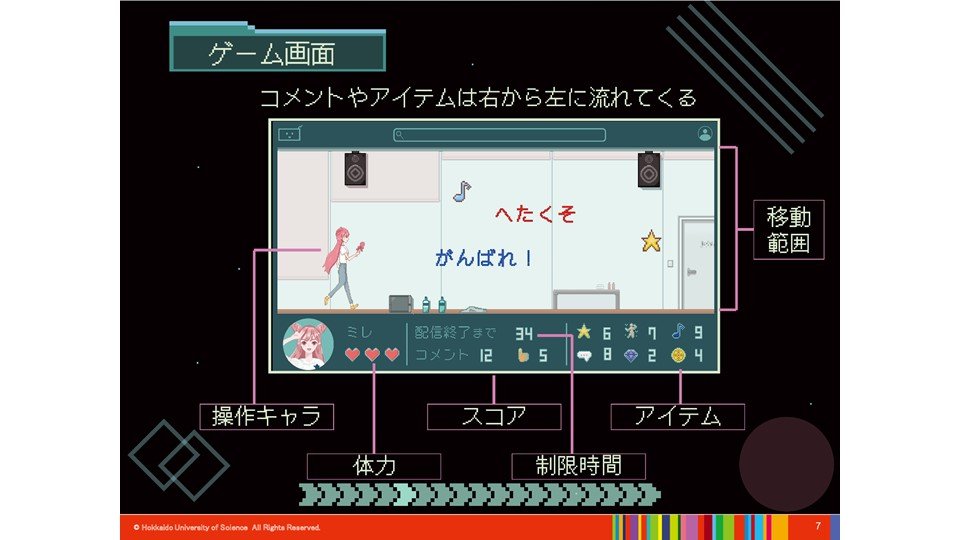 ゲーム学会第21回ゲームコンペは、ゲーム学会が毎年開催しており、作品としての単なるクオリティの高さや面白さだけを審査するのではなく、作品のコンセプトや表現としての斬新さ、新技術の利用、学術的な研究成果の利用といった芸術・学術的な視点、また、教育や健康、福祉、社会その他の分野へのゲームの利用など、社会的な視点で審査しています。