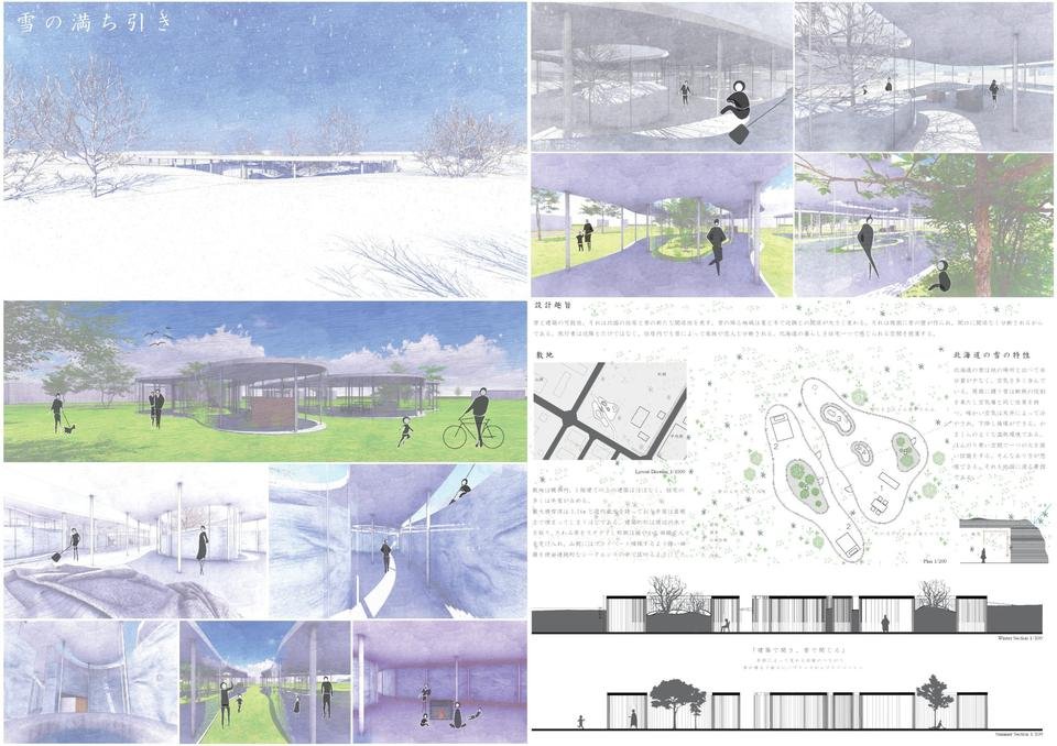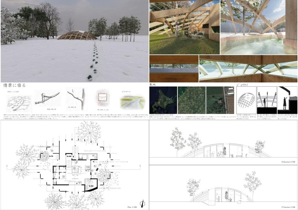 また、優秀賞に杉下 英宇さん、奥山 颯斗さん(いずれも本学建築学科3年生)の共同作品、奨励賞に飯田 二千翔(大学院1年)さん、白石 航大さん(都市設計研究所、本学卒業生)の共同作品が選ばれています。