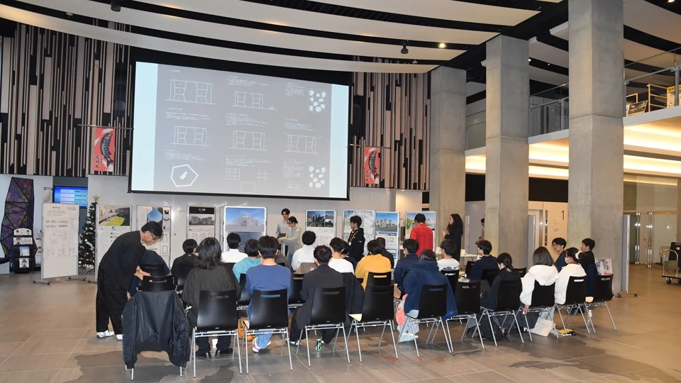 建築学科では、石狩市と連携し、地域が抱える課題や将来像をテーマとしたプロジェクト型の学びに取り組んできました。学生は現地調査や意見交換を通じて地域の特性を把握し、課題の整理やアイデアのブラッシュアップを重ねながら提案内容を検討することで、実社会とつながる学びの重要性を実感し、最終発表に向けた準備を進めてきました。