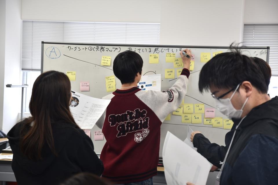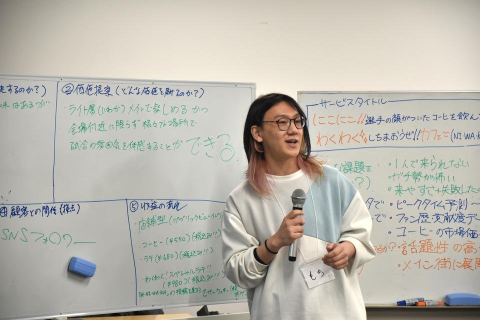 学生たちはチームごとにデータを選択しました。あらかじめ設定された「ITが苦手なベテラン飲食店主」や「スポーツ観戦に興味はあるが知識がない大学生」といったペルソナが抱える「痛み(悩み)」や「喜び(理想)」を、共感マップを用いて徹底的に言語化しました。その後、BIツールを駆使し、公的データや企業データを分析し、「自分の仮説が正しいか」をデータで裏付ける、プロフェッショナルさながらのプロセスを体験しました。