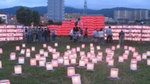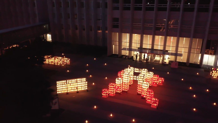 大学生が小学校や児童会館を訪れて子ども達にちょうちんの制作を指導し、当日の夜、そのちょうちんへ一斉に火を灯します。