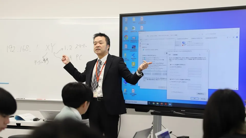学生はスマートフォンを持っていて、スマートフォンやパソコンはインターネットに接続されているのが当たり前の世代ですが、講義ではまず「講義室だけに閉じられたネットワークに接続する」ことから始まりました。