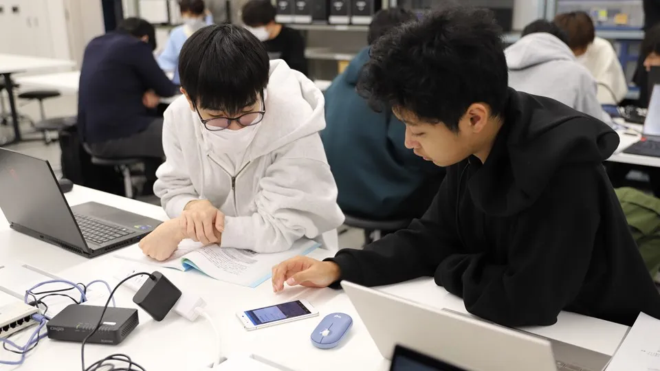 情報工学科の講義では、実機を用いて日常生活ではなかなか使用しない設定等を活用しながらシステム開発を見につけていきます。