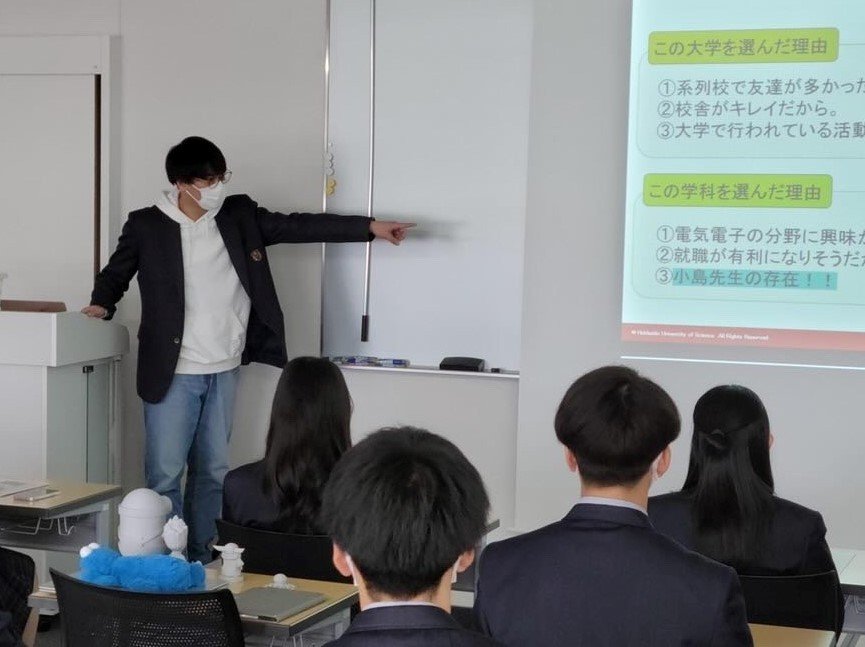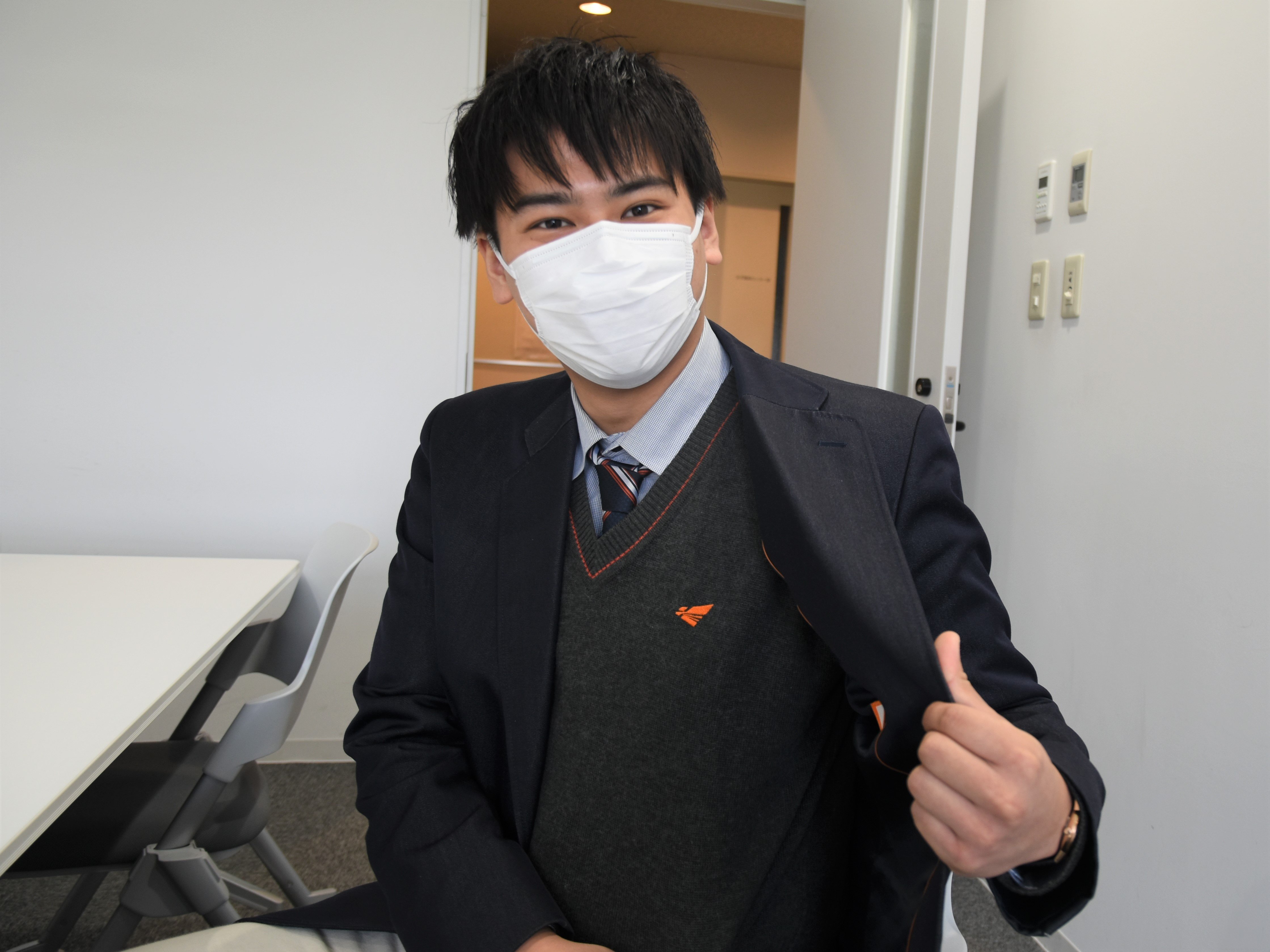 高校を卒業し2年以上が経った現在も、高大連携授業で母校の生徒達と接する時などに制服ブレザーを着用しています。
