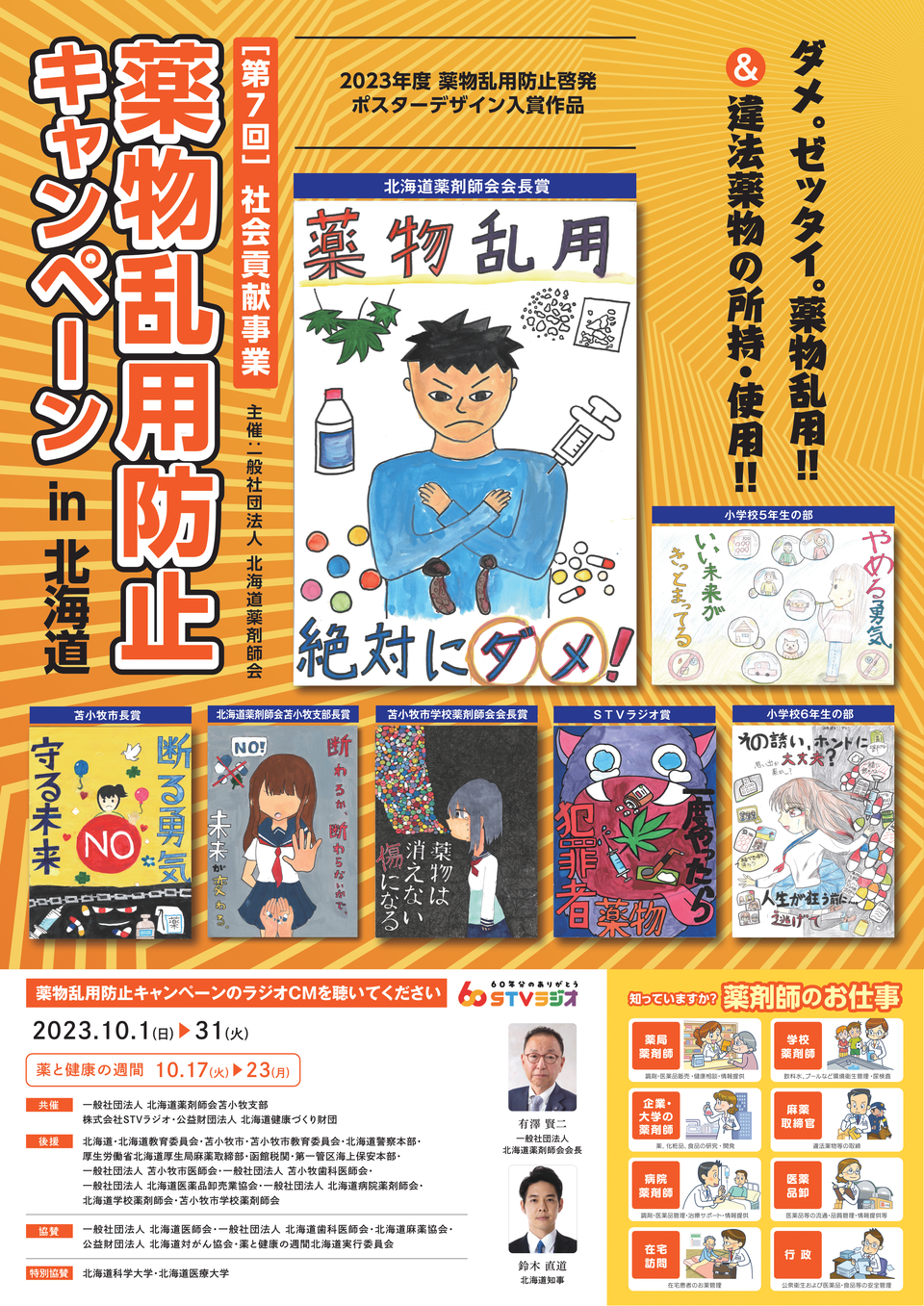 なお、10月17日(火)より10月30日(月)まで、薬物乱用防止啓発ポスターをJR北海道主要駅や地域の施設、本学A・B・G棟に掲示し、薬物乱用防止を啓発します。