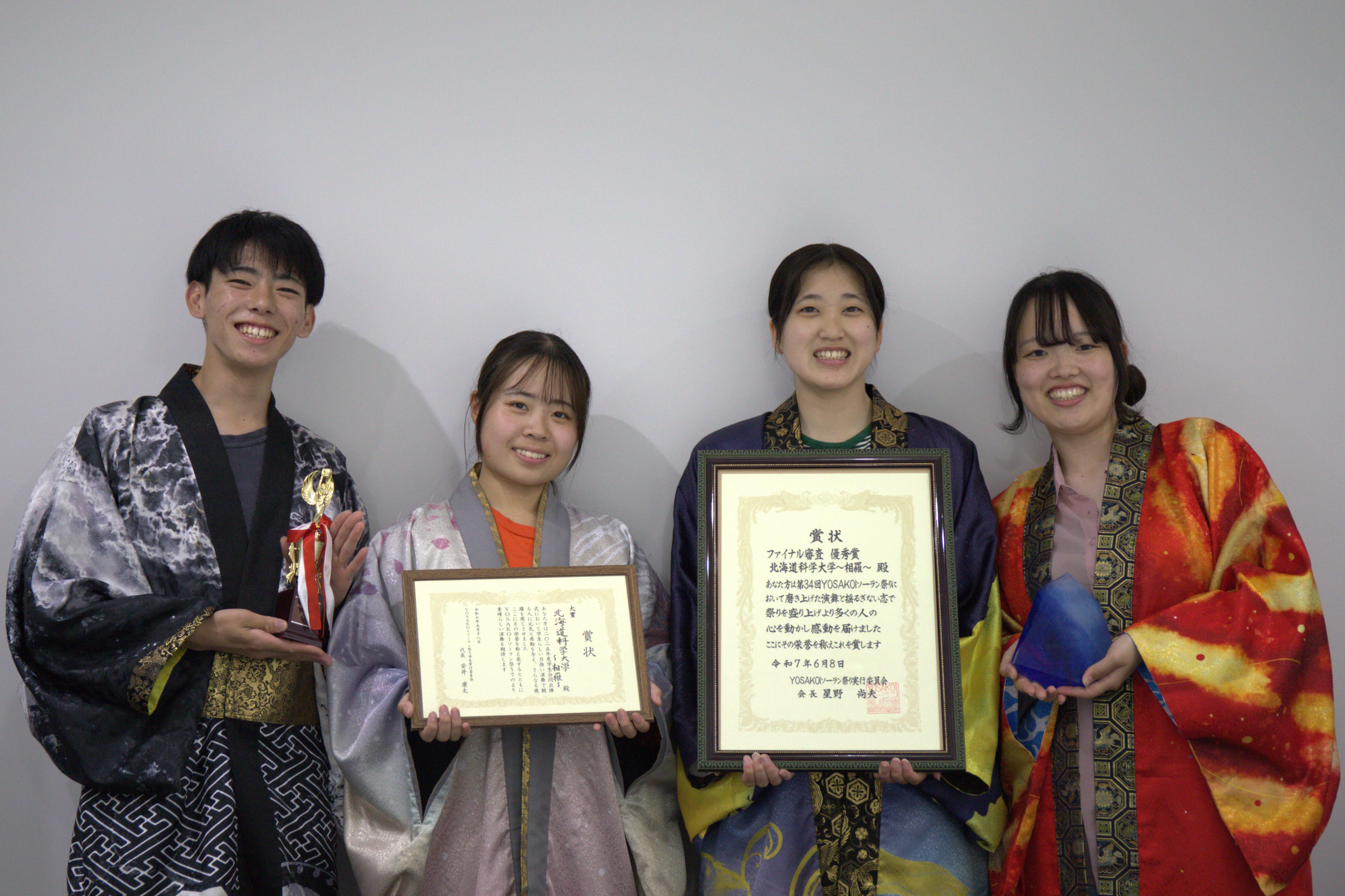 本学の課外活動団体であるYOSAKOIソーラン部~相羅~が、2025年5月に開催された道内大学のYOSAKOIチームが一堂に会した「2025年度 学生合同出陣式」で【大賞】を受賞。さらに「第34回YOSAKOIソーラン祭り」では、【ファイナル審査 優秀賞】を受賞するなど、目覚ましい成果を収めました。