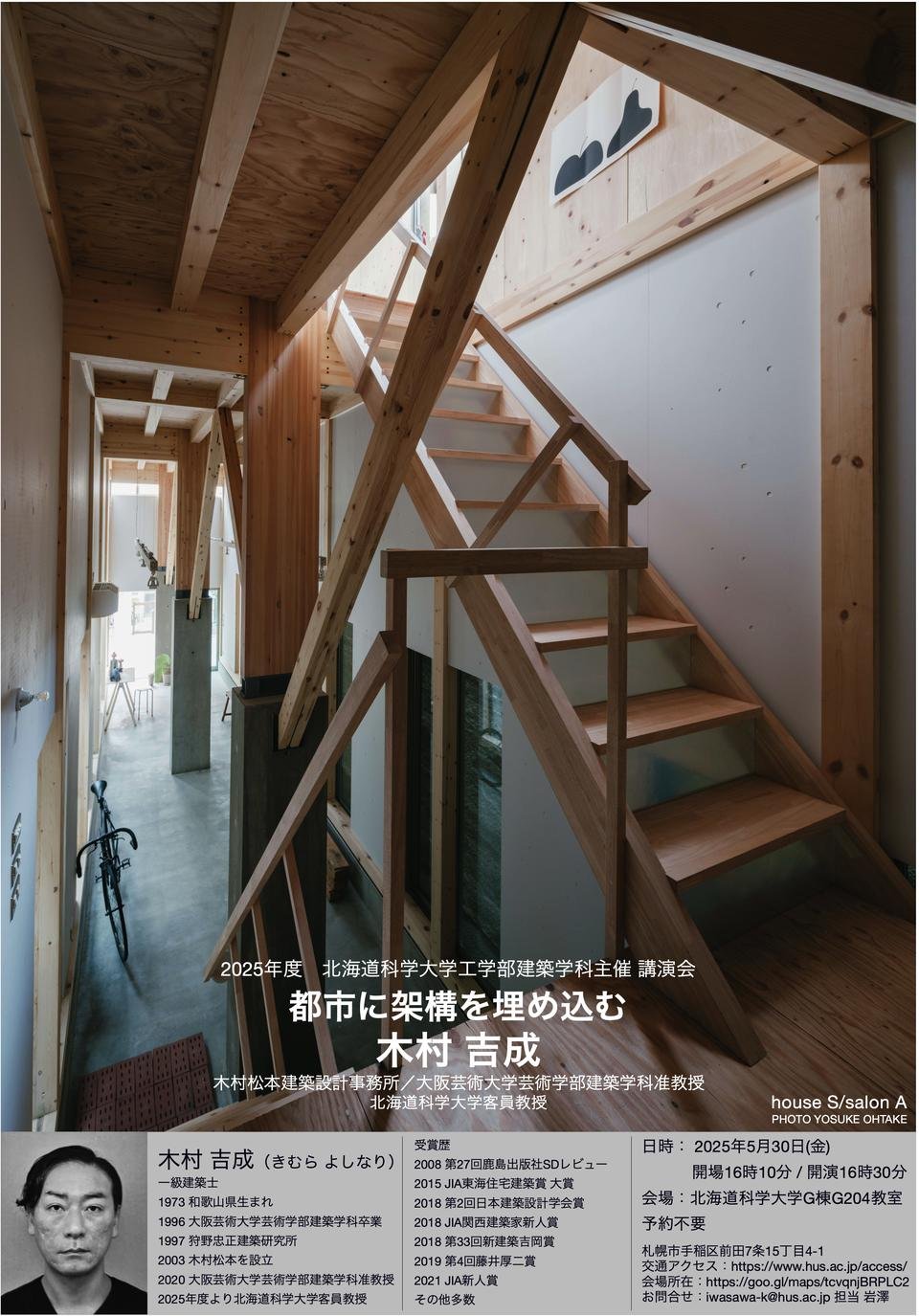 2025年5月30日(金)、木村松本建築設計事務所 主宰 建築家 木村 吉成 氏を講師にお招きし、公開講座「都市に架構を埋め込む」を開講します。