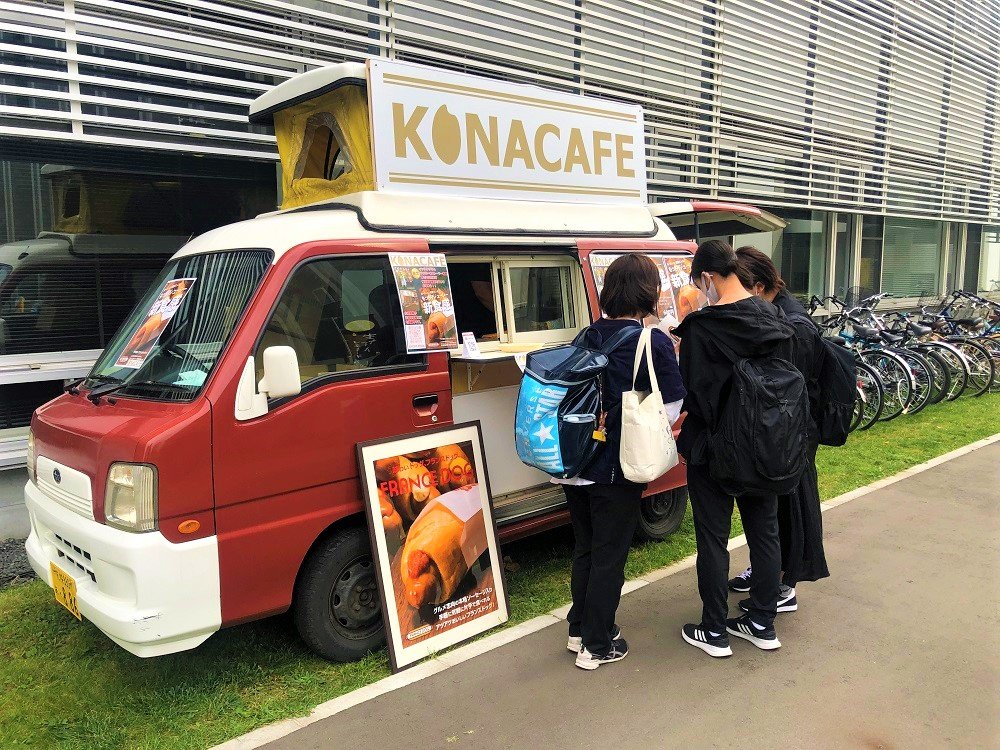 2021(令和3)年10月、北海道科学大学のG棟中庭にキッチンカーが登場し、道内初となる「フランスドッグ」の販売を開始しました。