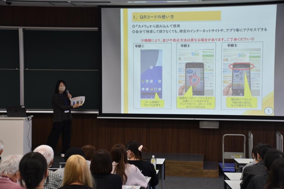続いて、手稲区介護予防センター中央・鉄北およびまえだの職員の方々より、スマートフォンの基本的な使い方について説明が行われました。