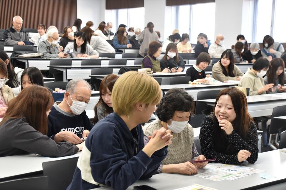 第4回目となる今回は、地域の高齢者76名と本学看護学科2年生110名が参加し、スマホ操作の学習と交流を通じて、地域のつながりを深めました。