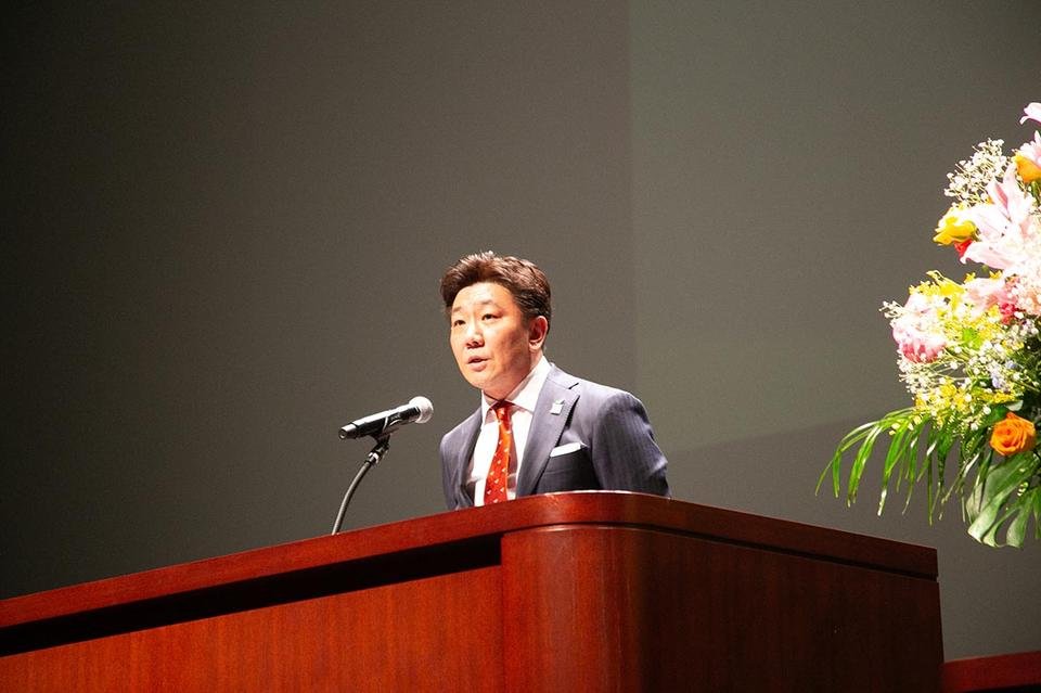 「必ず、挑戦の先には笑顔があります。その笑顔は、伝達されます。人を優しい気持ちにさせます。ときには誰かの命や生活を守る力にもなります。その笑顔がみたくて、我々1人1人が北海道科学大学の一員として、みなさんを全力でサポートします。これから、4年もしくは6年後、誰かの役に立つ仕事はできるための力をつけ、社会に笑顔で旅立てるように、他人の物差しでは測れない力をつけ、見えないモノを大切にできる人であるように、一緒に未来へ進んでいきましょう。」