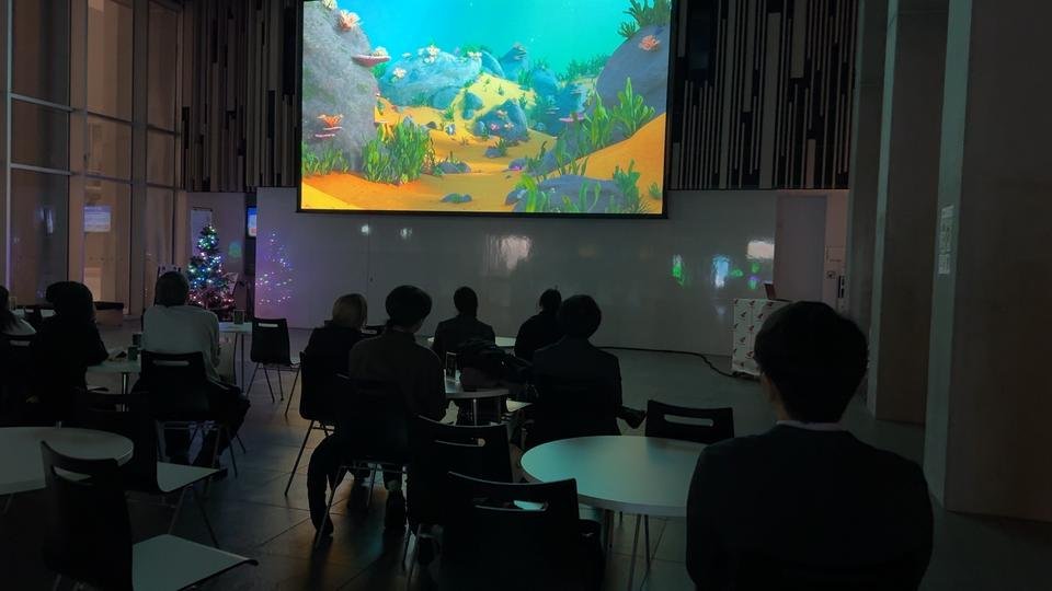 子どもから大人まで楽しめる内容で、大型スクリーンに映し出される映像に、キャンパスは映画館にいるような空間となりました。