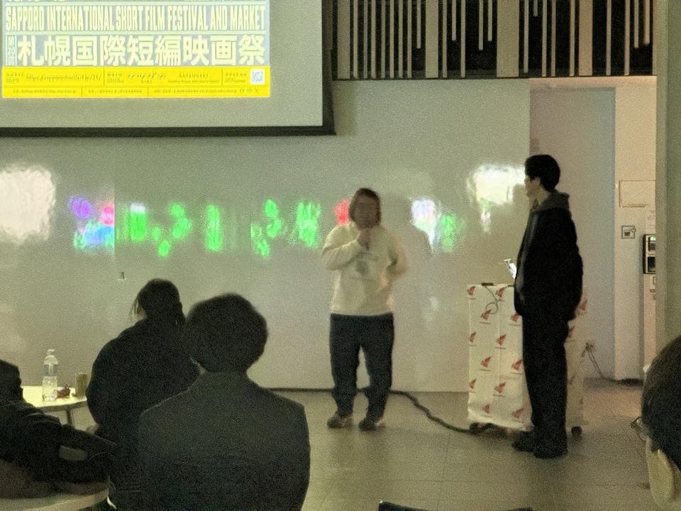 本上映会では、第20回札幌国際短編映画祭のノミネート作品の中から、映画祭プロデューサーでもあり、メディアデザイン学科の倉本浩平教授がセレクトした6作品を上映しました。そのうち2作品は本学学生が制作した作品です。