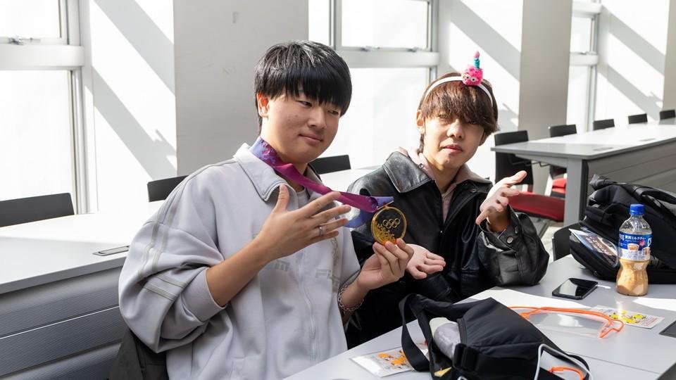その後、大学内の教室に移動し完歩賞の授与と、阿部雅司さ
