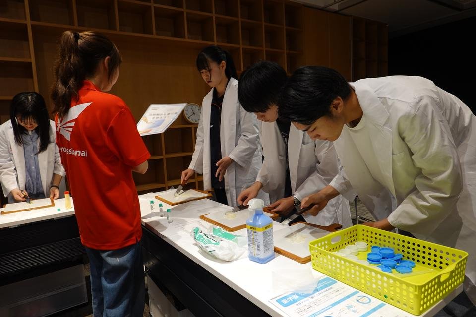 医療機器に触れたり、化粧水やハンドスピナーを作ったり…と、実際に手を動かしながら各学科の学びを体感していただきました。
