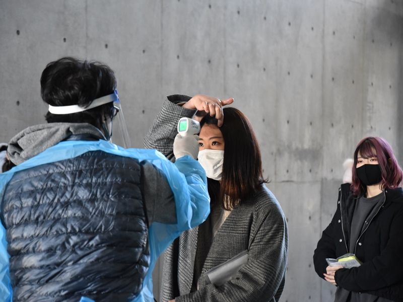 訓練では、検温後に避難者の受付を行い、発熱者や濃厚接触者は別ルートで避難所に入館するなど、新型コロナウイルス感染症対策を講じた避難所開設の手順について確認しました。