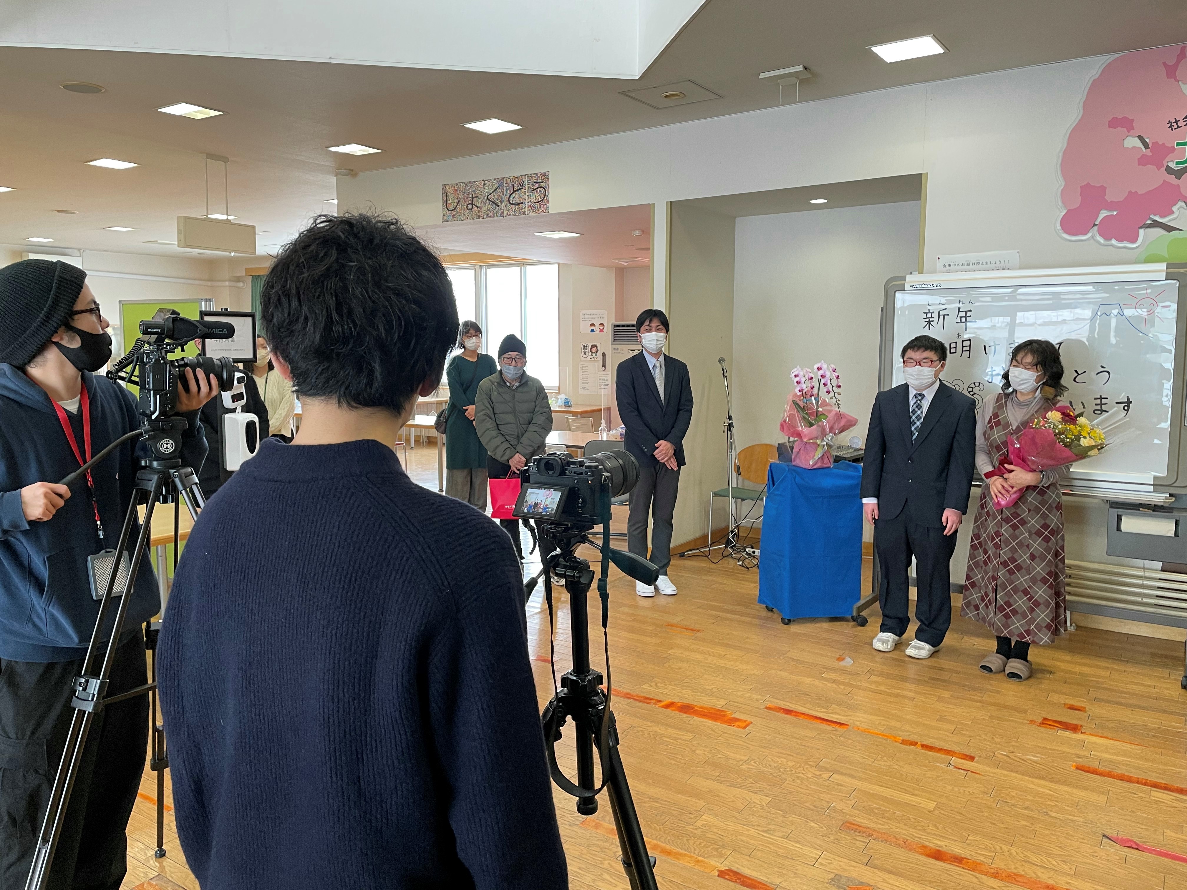 2022年1月8日(土)、手稲区の社会福祉法人 障がい福祉サービス事業所 北愛館で行われた新年を祝うイベントにて、同館から依頼を受けた本学メディアデザイン学科の倉本浩平准教授が記録映像を撮影しました。