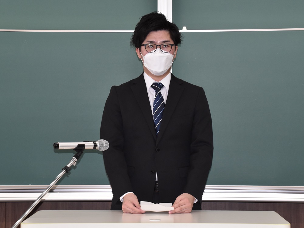 受賞した学生・団体には、渡辺泰裕学長から表彰状と副賞が授与され、受賞者を代表して医療技術学専攻の木田 直弥さんから感謝の言葉が述べられました。