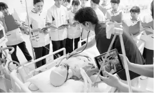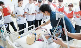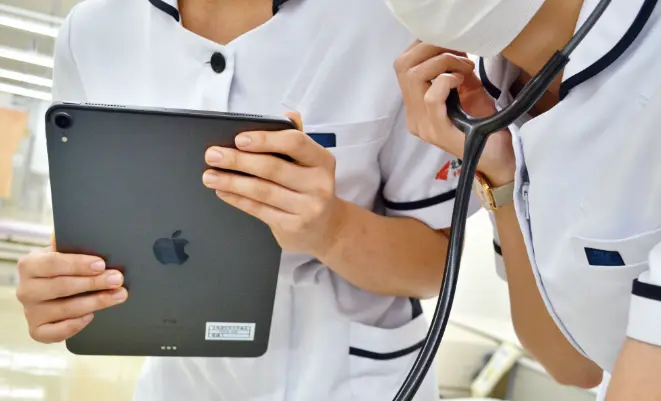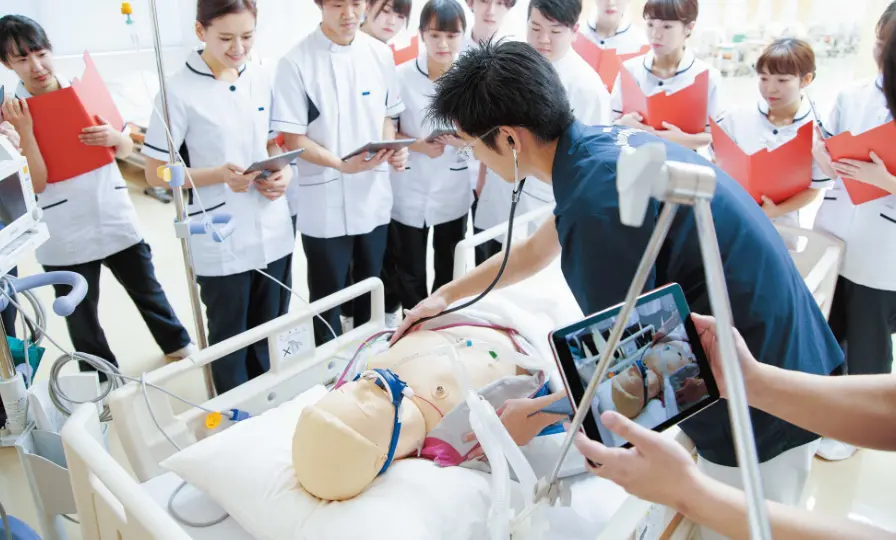 高度化する医療技術にも対応できるように最新の機器を利用しています。高機能なシミュレータを駆使し、臨床現場をリアルに再現した環境の中、iPadでリアルタイムの動画を共有し、観察技術を全員で体感しながら学ぶことができます。病気が重症化した場合にも、健康を取り戻すための生活支援は看護の力です。医療にIT技術を取り入れ、専門的な知識や技術を深める教育を実施します。