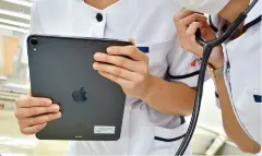 看護学科ではiPadを利用した電子教科書を使用。データ処理などのパソコンを使った授業も行います。