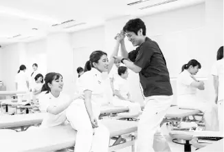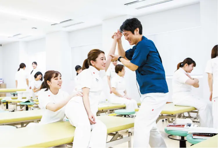 運動器系や内部系の疾患と並列して学習する脳卒中を始めとする中枢神経系の理学療法科目。授業では、実際に障がいのあるモデルの方にご協力いただき、理学療法評価を実践しその方にあった治療プログラムを立案します。理学療法に必要な実践力と、検査結果の分析力やデータを統合・解釈する判断力を養う授業です。