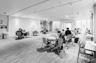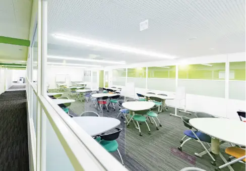 夜10時まで自由に利用できる学習室。個人又はグループで、課題の予習や復習ができます。