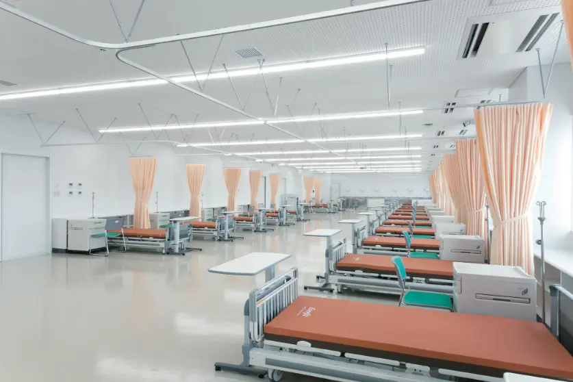 看護技術を学ぶ実習室のなかで、一番大きい部屋。ベッド数は24台あり、学生3.3人に1台の充実ぶりです。