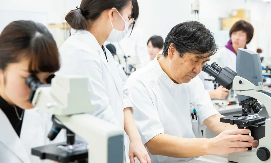医療に携わる企業人や臨床工学技士を目指す者が修得すべき基礎的な医学実習を行います。手洗法やガウンテクニックなどの医療基本手技や心電計測、血圧測定による人体の循環器生理学、細胞染色や顕微鏡観察による微生物学に必要な手技について学びます。解剖学実習ではラットの解剖を通し、各種臓器の解剖と生理、さらに命の尊さを学びます。座学で学んだ知識の深化と教科書だけでは得られない技術・技能と態度を習得します。
