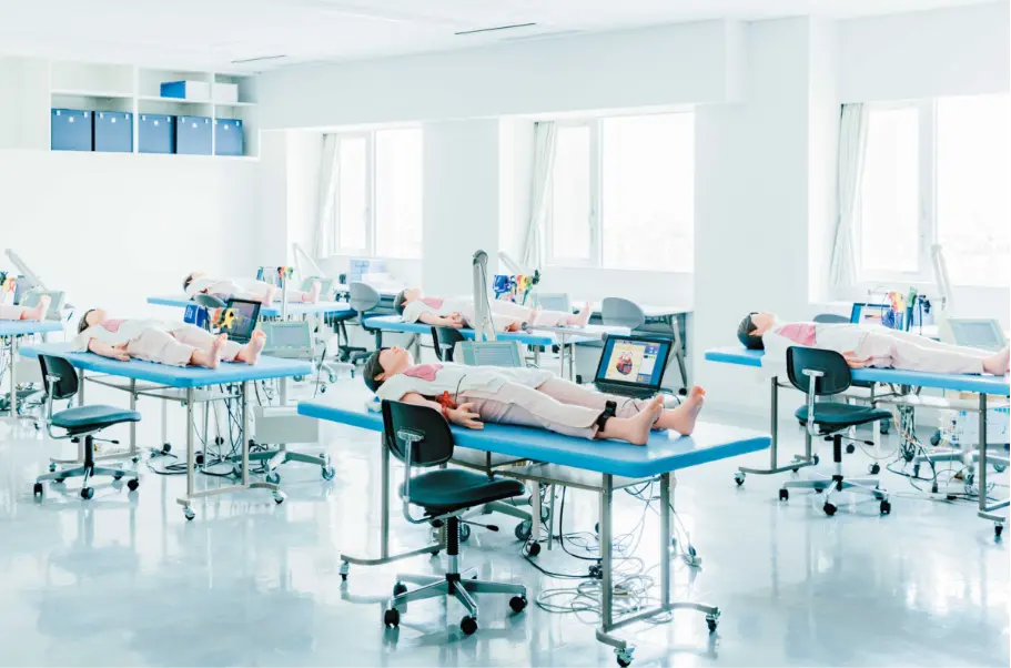 多くの医療機器・実験教材と、一体約200万円の人形を備え、あらゆる症例、場面を想定できる環境です。