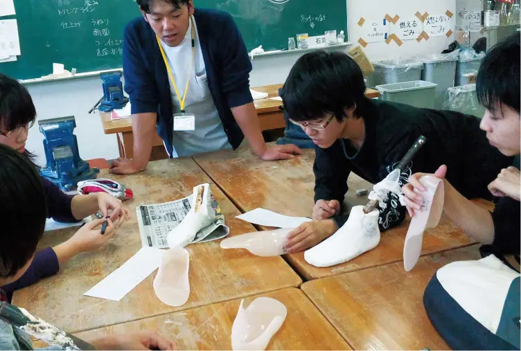 学生同士で身体の型を取り、装具の製作を体験します。装具に必要な機能と、それを満たすにはどのような構造にすればいいのか、製作を通して学びます。