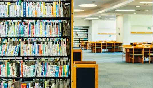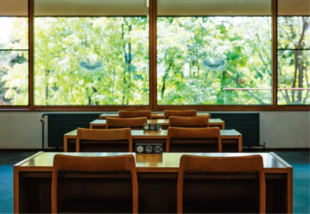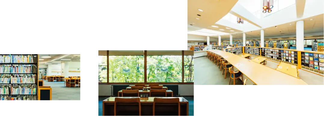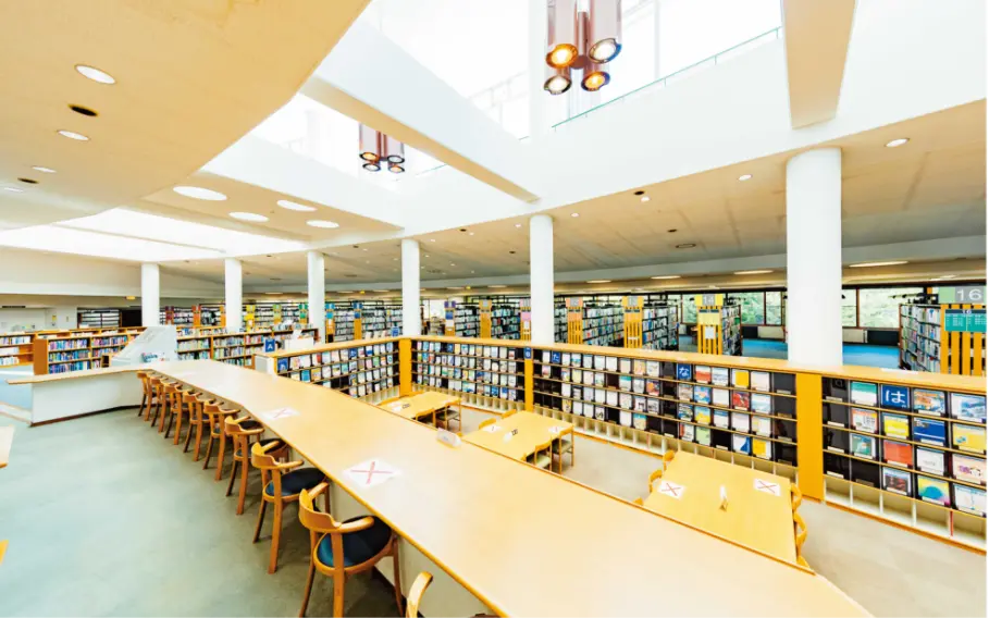 専門書や一般図書、雑誌・新聞、視聴覚資料など、蔵書数は約22万冊。AV視聴室・グループ学習室・個別学習室などがあり、勉強に専念したいときや憩いの場として使われています。
