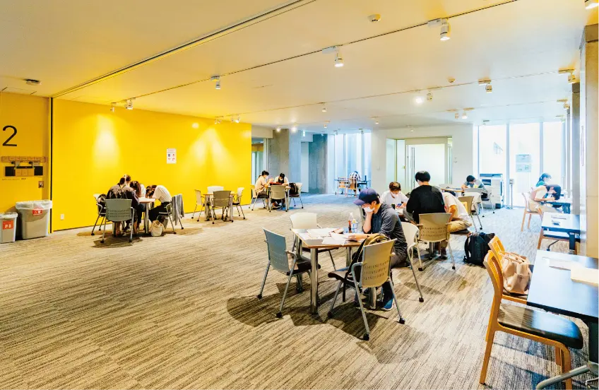 学内のいたるところにフリースペースがあります。勉強したり、友人と話したり、学生が自由に利用できます。