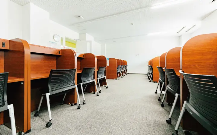 静かな環境で集中して学習に臨みたい時には、一人ずつ区切りがある個別学習室が便利。