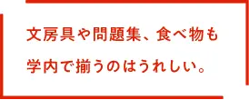 学修に必要な問題集や書籍から文具やドリンク、日用品まで、学内のローソン、丸善で購入できます。